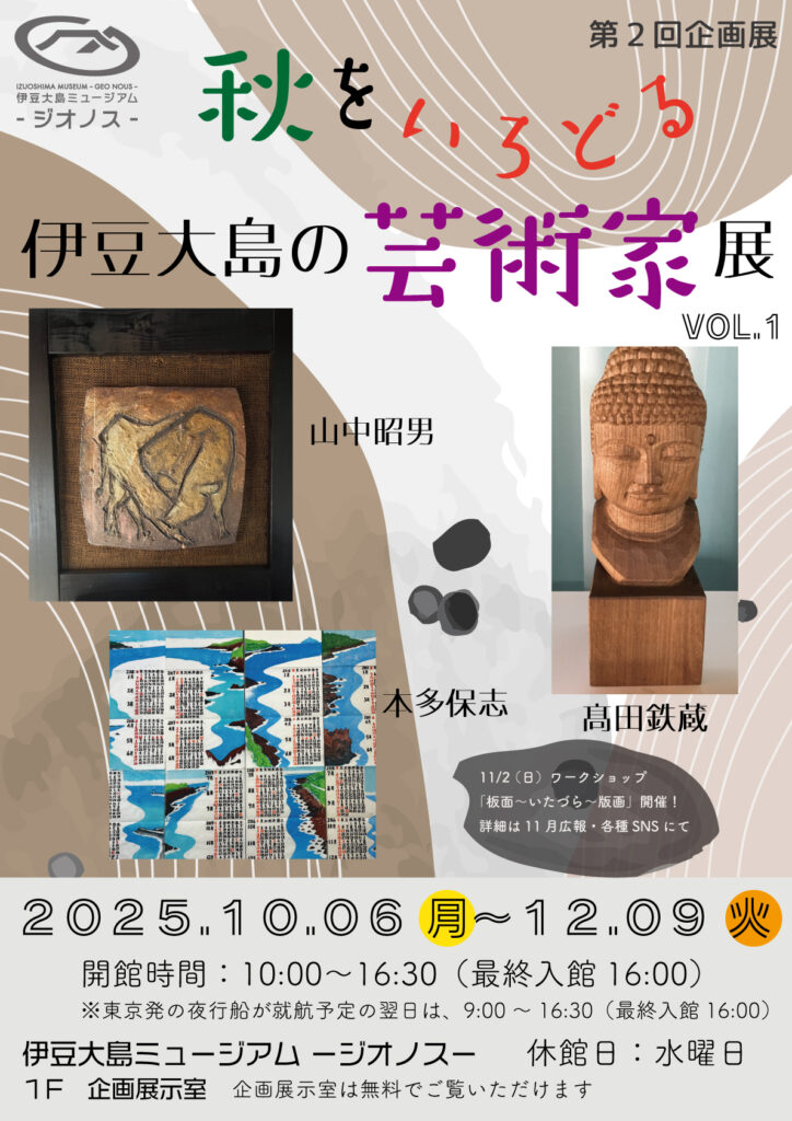 おすすめジオノス企画展示の第2回目は、伊豆大島の豊かな自然と暮らしの中で育まれた地元の芸術家・・・髙田鉄蔵さん(彫刻)・山中昭男さん(陶芸)・本多保志さん(版画)にクローズアップしました!企画展示室は無料でご覧いただけます。皆様 […]